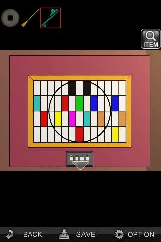 円形は前の部屋の窓に対応していて、各色のマスに映っている笹の葉の数を数える。