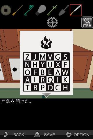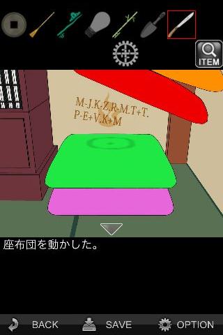 戸袋にあったアルファベットのメモと数字のメモを合わせて、座布団の後ろのアルファベットの式に数字を当てはめる。