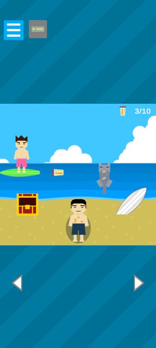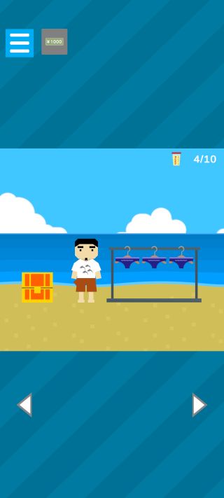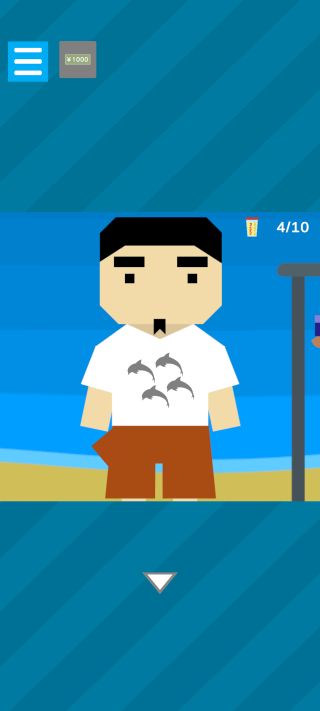 男性を拡大して、服のイルカの数と向き『4=左』を確認。