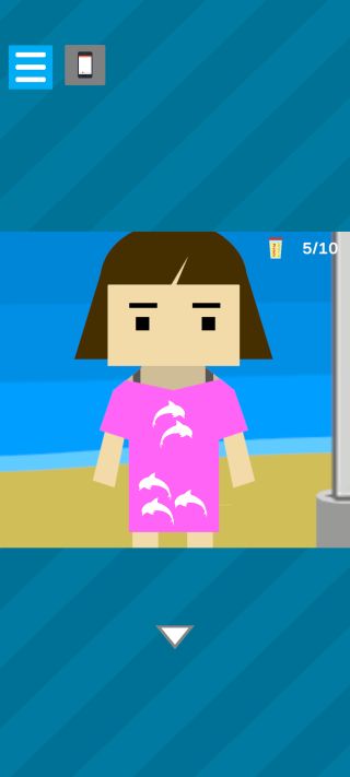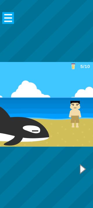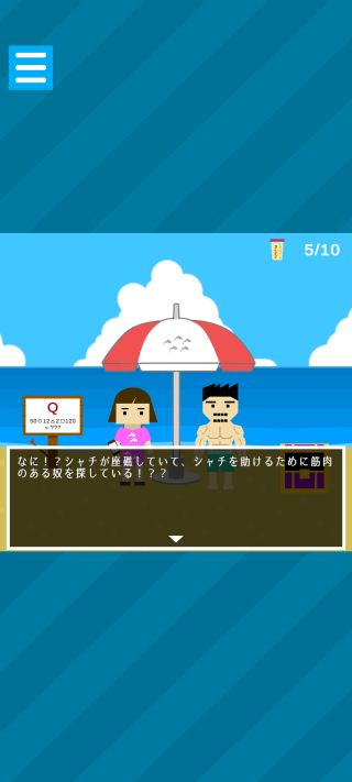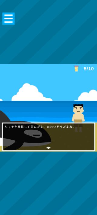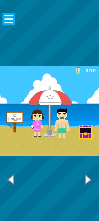 パラソルを拡大して、イルカの数と向き『5=右』を確認。