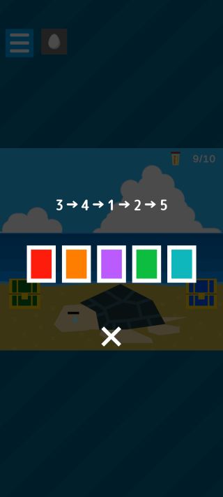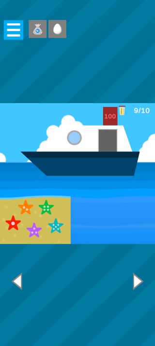 先ほどのヒトデの●の数で『紫、緑、赤、オレンジ、青』の順で押す。