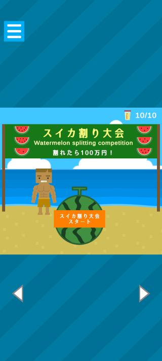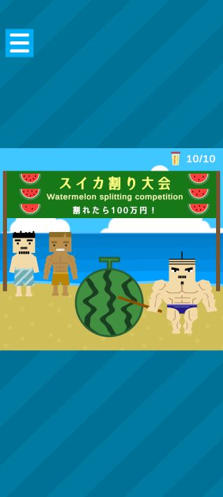 スイカ割り大会場に移動して、『スイカ割り大会スタート』を押してクリア。