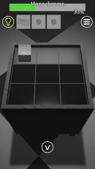 中央のキューブを左上に動かして、左下と右下に2つの「キューブ」をセットする。