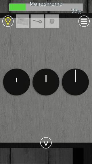 左上の装置を拡大して、先ほどの針の向き『下、左下、右上』に合わせる。