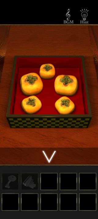 下の段の柿の大きさが『上、右上、左上、右下、左下』の順で『小大大小小』なのを確認。