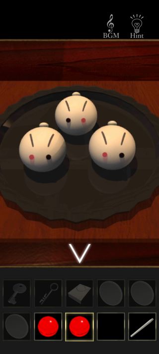 ウサギの饅頭を拡大して、赤い目の位置を確認。