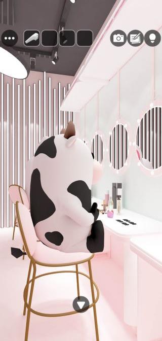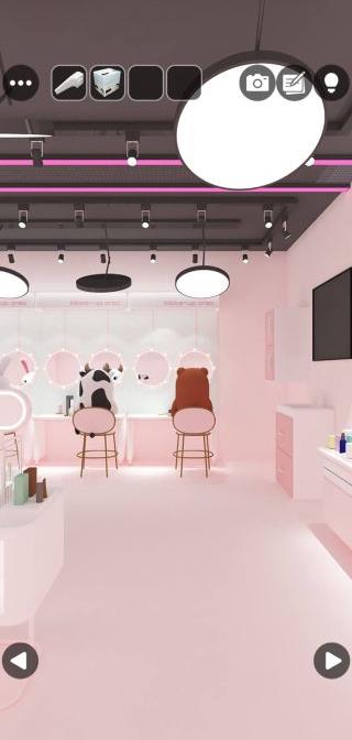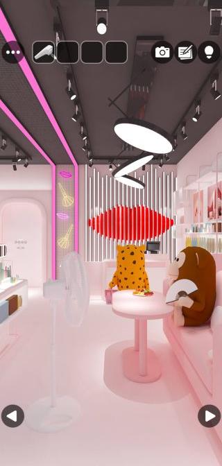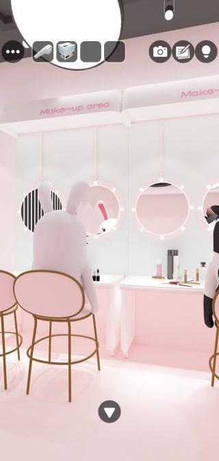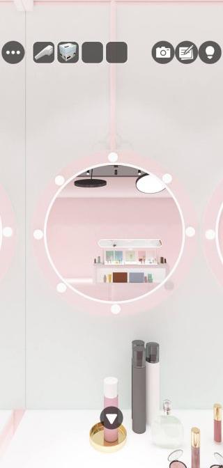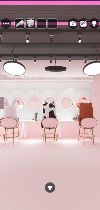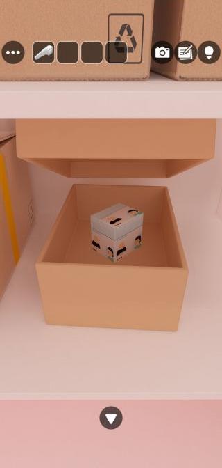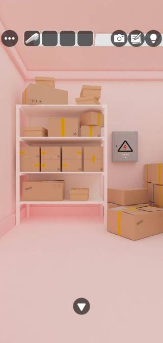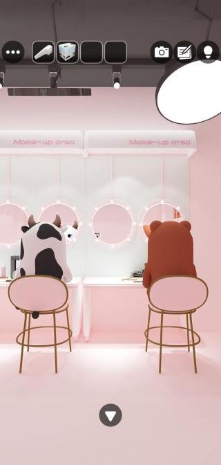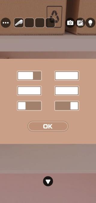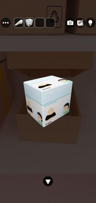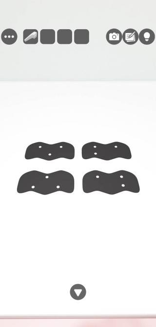 左から2番目の鏡を拡大して、電球が消える順番『右下、上、下、左上』を確認。