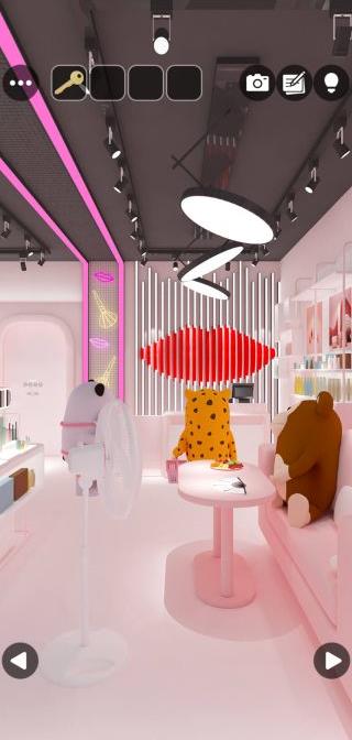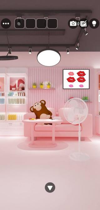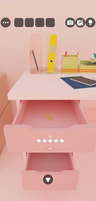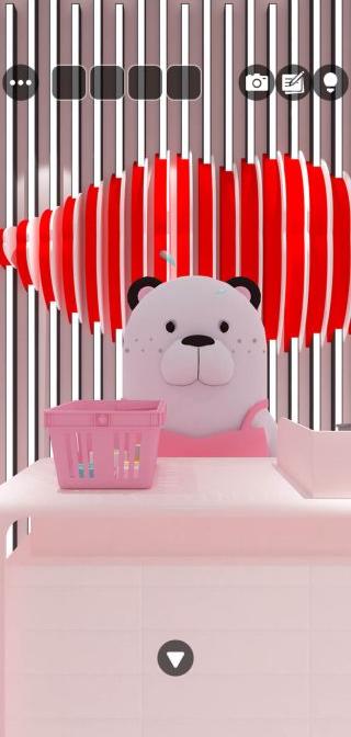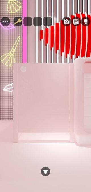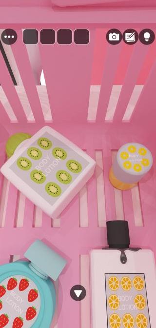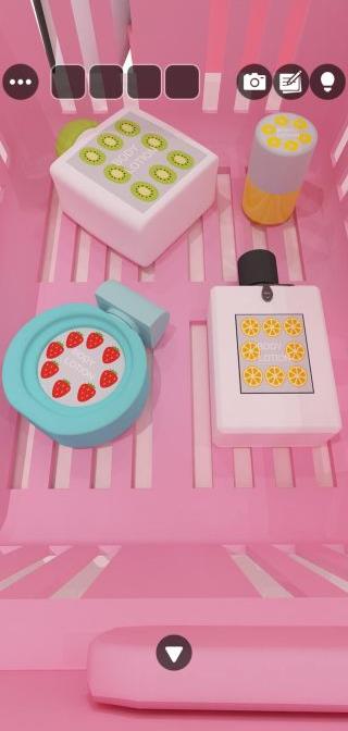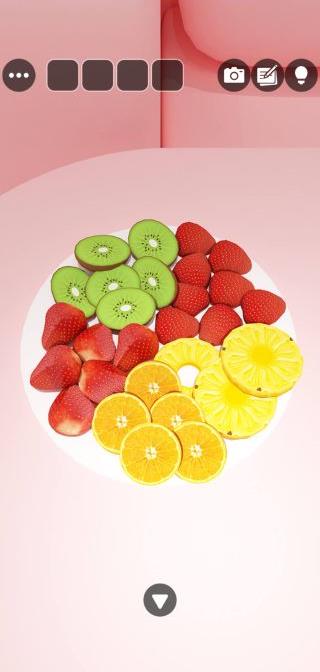 テーブルの上のフルーツを拡大して、左上のキウイから時計回りに『□◯◯□◯』となるのを確認。