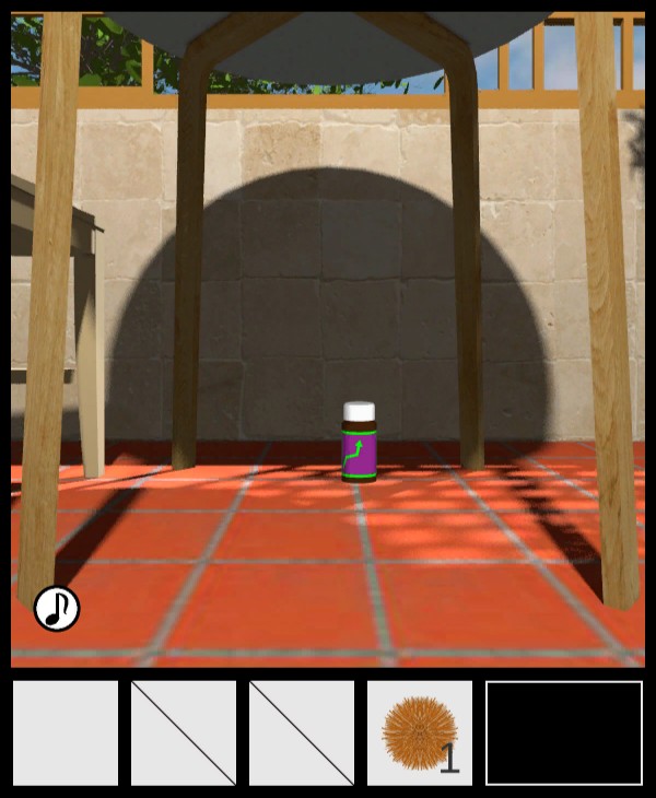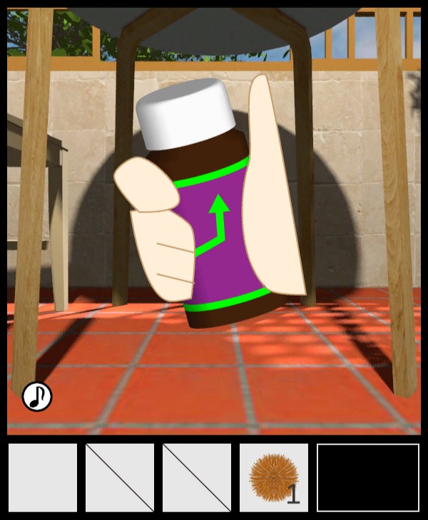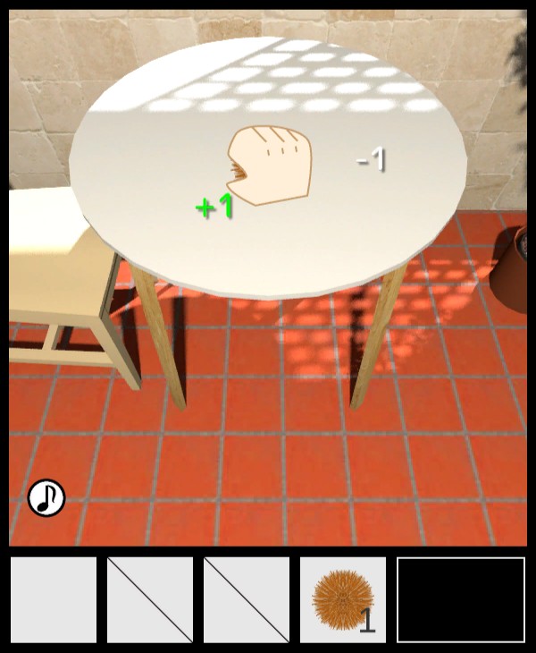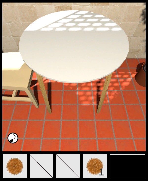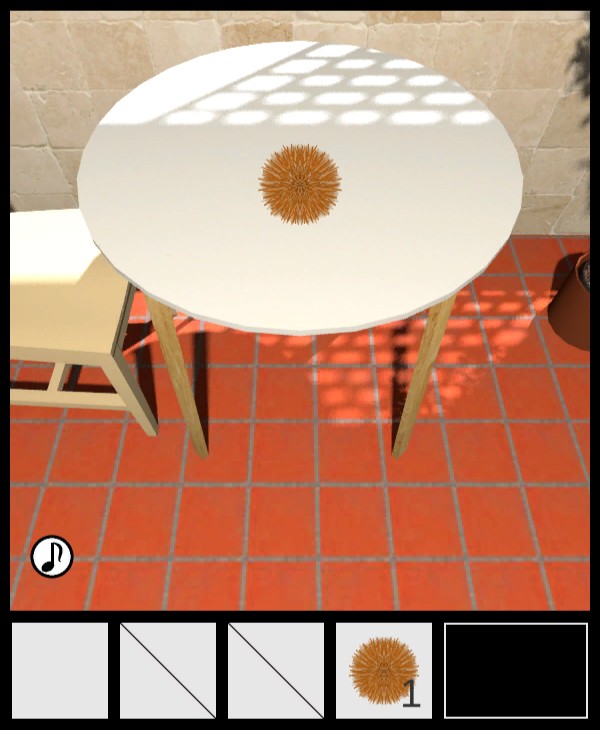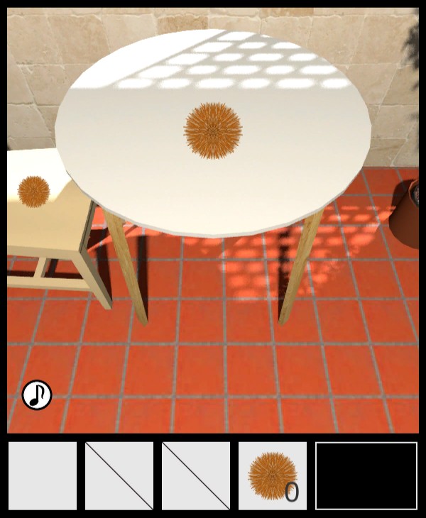 椅子の上から「種なしイガ栗」を入手して、テーブルの下を調べる。