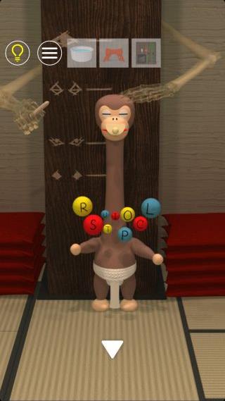中央のサルを拡大して、『赤大、青中、赤小、黄大、赤小、黄小、赤大』の順で『SPIRITS』となるのを確認。
