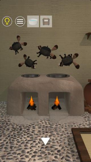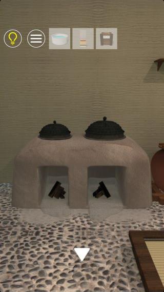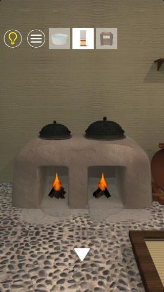 左奥を拡大して、「マッチ」で竈に火をつける。