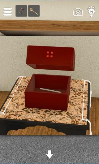 脱出ゲーム 隠れ宿 無料 3.2 評価する 送信する ArtDigic 攻略その10 左の部屋に移動。 投扇興の紙を確認。 右の本を開いて確認。 「扇子」を中央奥に3回使う。 箱を拡大。 庭園で確認した4隅の穴の形に合わせる。 中から「ドライバーの先」を入手。 戻って右に移動して、奥のふすまを拡大。 STAGE 1 攻略その1 攻略その2 攻略その3 攻略その4 攻略その5 攻略その6 攻略その7 攻略その8 攻略その9 攻略その10 攻略その11 攻略その12 攻略その13 攻略その14 攻略その15 攻略その16 STAGE 2 攻略その1 攻略その2 攻略その3 攻略その4 攻略その5 攻略その6 攻略その7 攻略その8 攻略その9 攻略その10 攻略その11 攻略その12 攻略その13 攻略その14 攻略その15 攻略その16 攻略その17