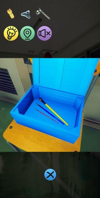 筆の色『小=赤、中=青、大=黄』を確認して、階段の上に移動。
