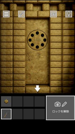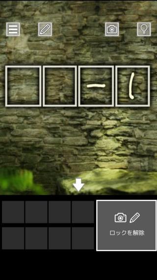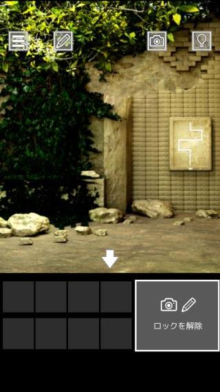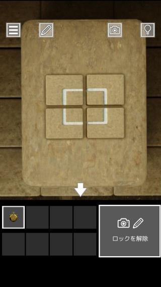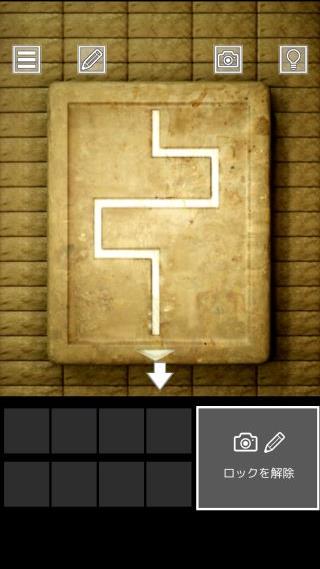 左の壁の石板を拡大して、矢印の順で『└、┐、┘、┌、└、┐』を確認。