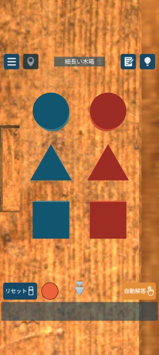 左下の箱を拡大して、『青●、赤▲、青▲、赤■、赤●、青■、青●、赤▲』の順で押す。