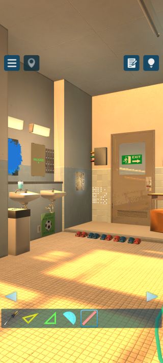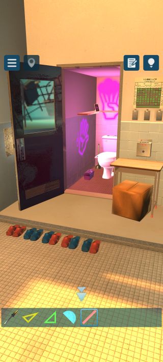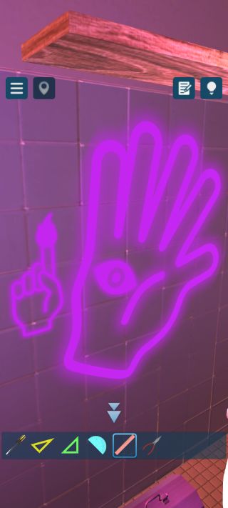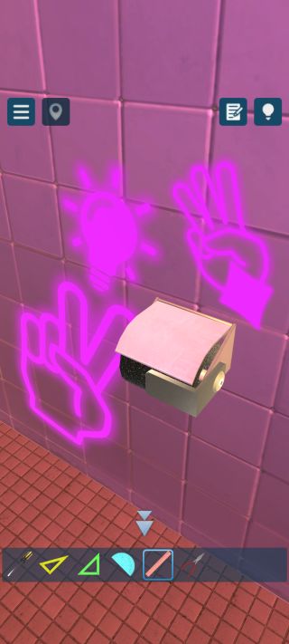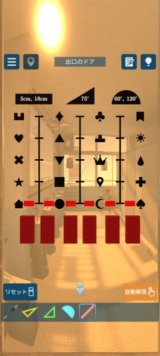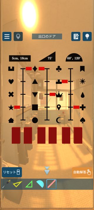 右の壁を拡大して、指の数で『2=電球、3=◆』を確認。