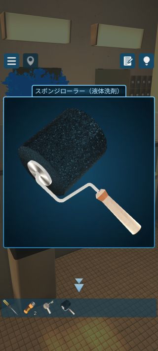 「スポンジローラー(液体洗剤)」を使って矢印の先を確認。