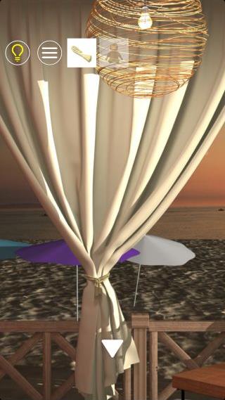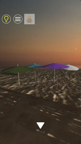 パラソルの色『緑青紫白』を確認して、2階に移動。