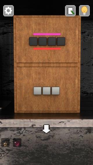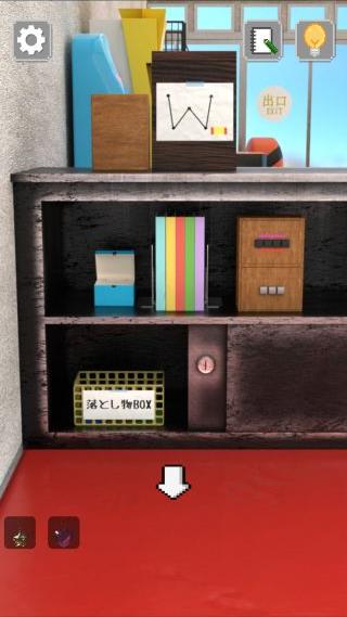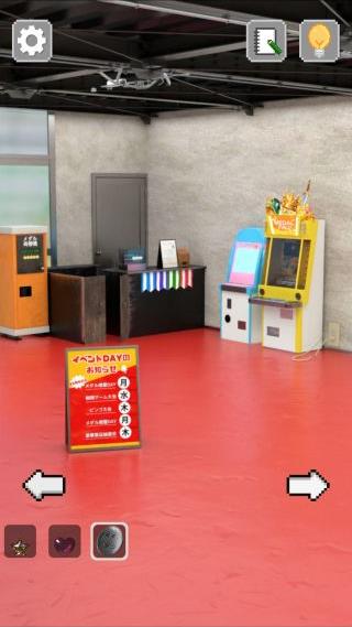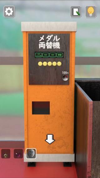 左奥のメダル両替機を拡大して、インベーダーゲーム機をヒントに左から『1、4、3、2、5番目』の順で押す。