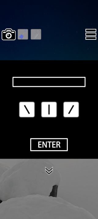 「雪かきスコップ」を使って、扉の装置を『\││/│/』の順で押す。