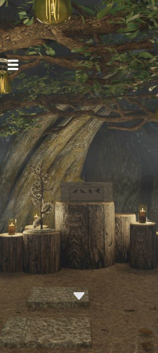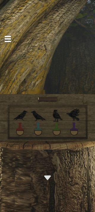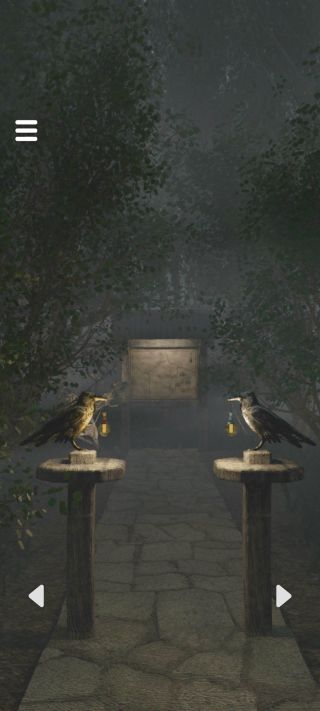 戻って左に2回移動して、左右の鳥のポーズとランタンの色を確認。