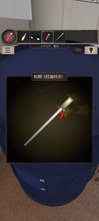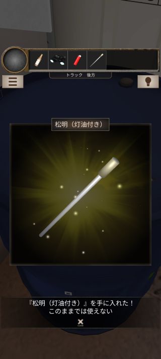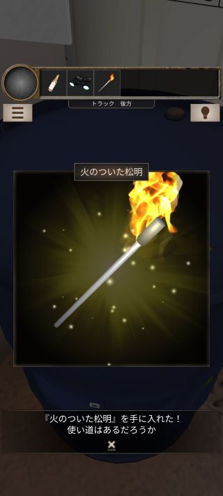 「ライター」で火をつけて、「火のついた松明」を入手。