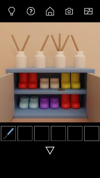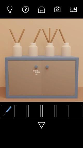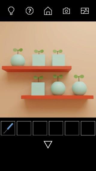 壁の植木鉢を拡大して、『上=●■■、下=■●●』を確認。