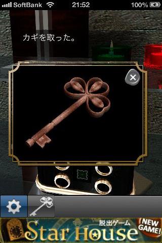 「真鍮のカギ」を入手して、左の棚の絵の前へ。
