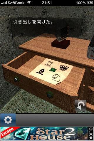 一番左の上の引き出しを開けて、チェスの駒のメモを確認。