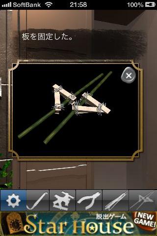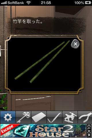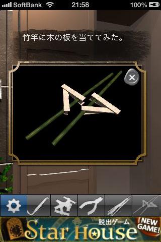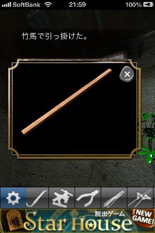窓を拡大して、「竹馬」を使って「木の棒」を入手。