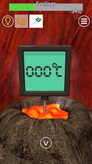 「温度計」を使って、『火山=850℃』を確認。