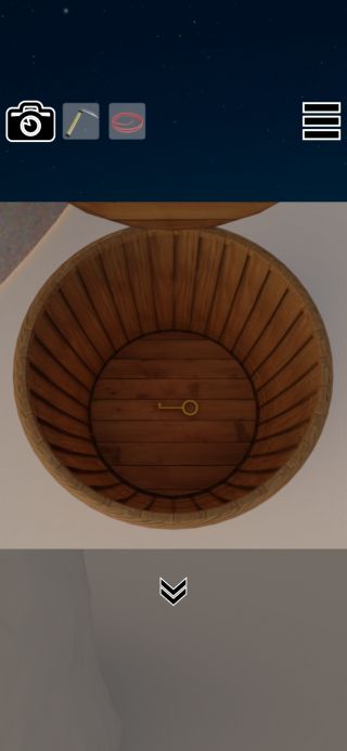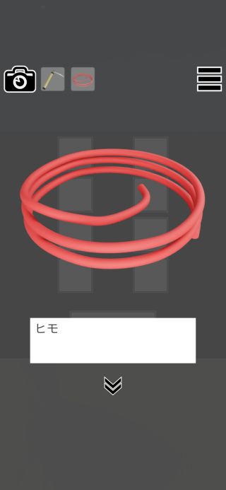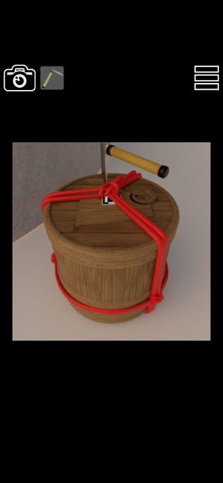 ヒモで縛られた桶を拡大して、「鎌」を使う。