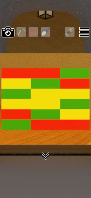 先ほどの羽根の『上=黄、右上=青、右下=緑、左=赤』をヒントに、『緑赤黄青』に合わせる。
