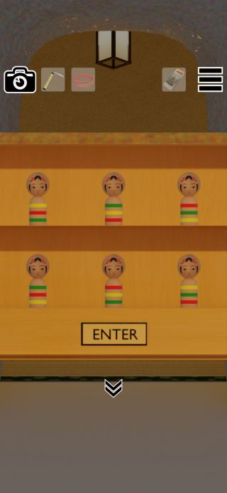 4つのお面の色と向きを上から順に確認。