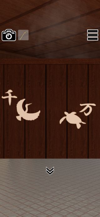 壁の『千=鶴、万=亀』を確認して、外に出て反対側に移動。