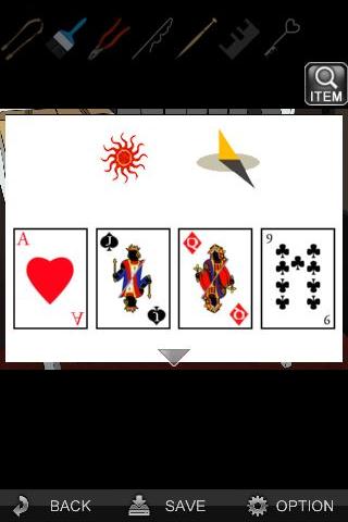 日時計の絵と、トランプの数『1、11、12、9』を確認。