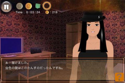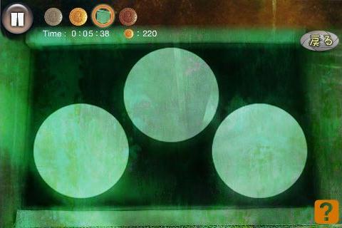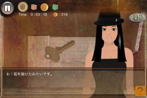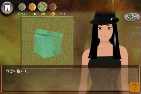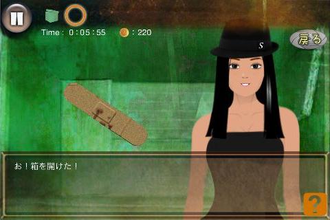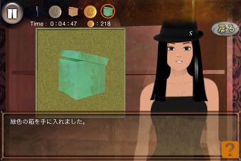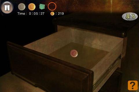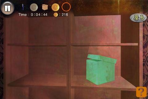 無料 評価する 送信する 攻略その4 右に移動して、右の棚に「青い鍵」を使う。 棚から「緑色の箱」を入手。 「銅色の箱」を調べる。 「レンチ」でフタを開けて、「銅色の鍵」を入手。 左に移動して、棚の左下の引き出しに「銅色の鍵」を使う。 引き出しを開けて、「銅色のコイン」を入手。 「緑色の箱」を調べる。 3枚の「コイン」をはめる。 「絆創膏」を入手して、クリア。 STAGE 1 攻略その1 攻略その2 攻略その3 攻略その4 STAGE 2 攻略その1 攻略その2 攻略その3 STAGE X 攻略その1 攻略その2