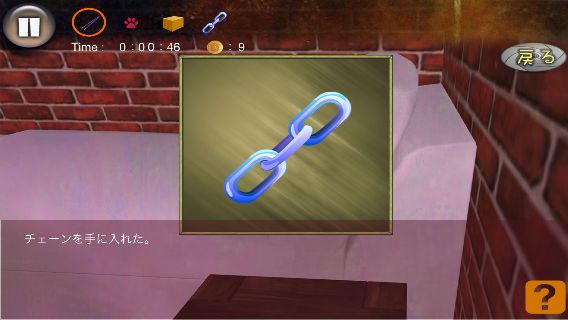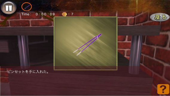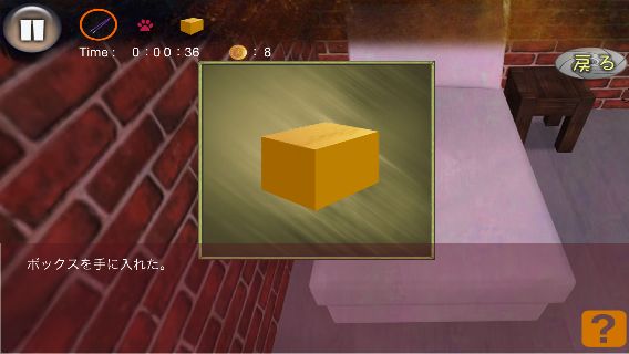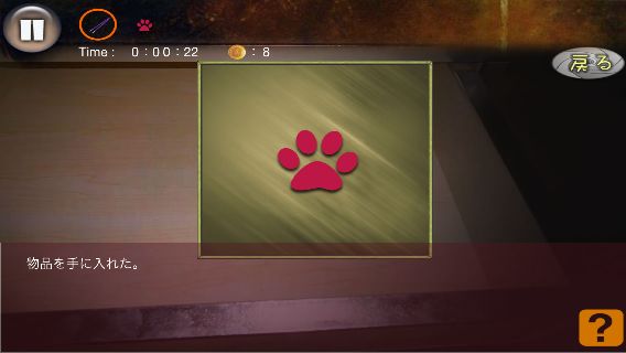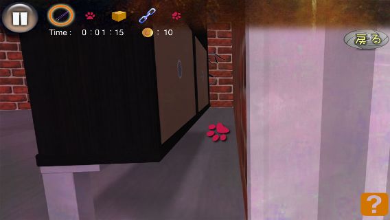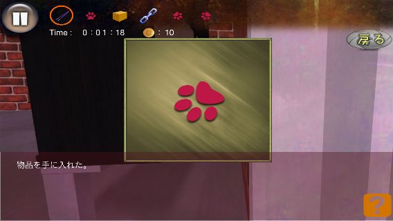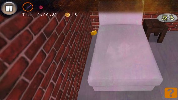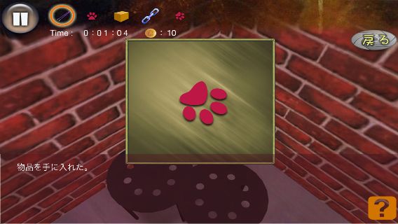 無料 評価する 送信する 攻略その1 机の前からスタート。 机の奥から「ピンセット」を入手。 引き出しを開けて、「足跡」を入手。 右に移動。 ベッドの奥から「ボックス」を入手。 枕元から「チェーン」を入手。 右に移動。 椅子の奥から「足跡」を入手。 右に移動。 棚の後ろ(棚の下をタップ)から、「足跡」を入手。 STAGE 1 攻略その1 攻略その2 攻略その3 STAGE 2 攻略その1 攻略その2 攻略その3