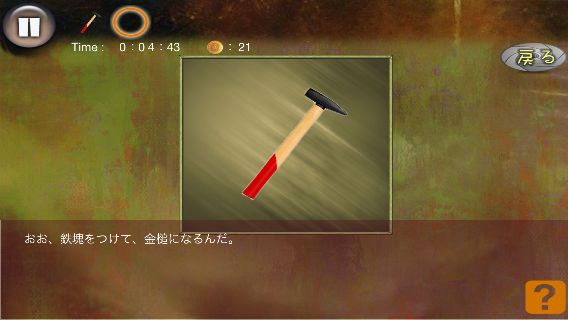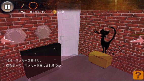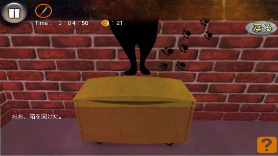 無料 評価する 送信する 攻略その3 『3時、6時、0時』に合わせて、「鍵」を入手。 右に移動して、左の棚に「鍵」を使う。 中から「鉄の塊」を入手。 「木の棒」に「鉄の塊」を使って、「金槌」にする。 右の猫の棚に「金槌」を使う。 中から「画びょう」を入手。 扉に「画びょう」を使って、脱出。 STAGE 1 攻略その1 攻略その2 攻略その3 STAGE 2 攻略その1 攻略その2 攻略その3