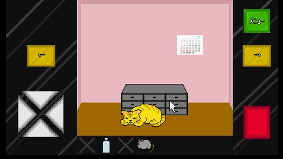右に移動して、ネコに「ネズミのおもちゃ」を使う。