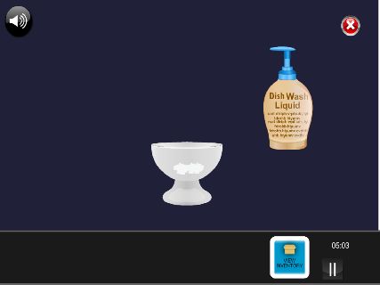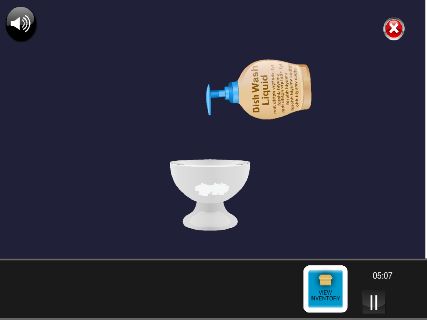 「洗剤」を右上にドラッグして、カップに入れる。