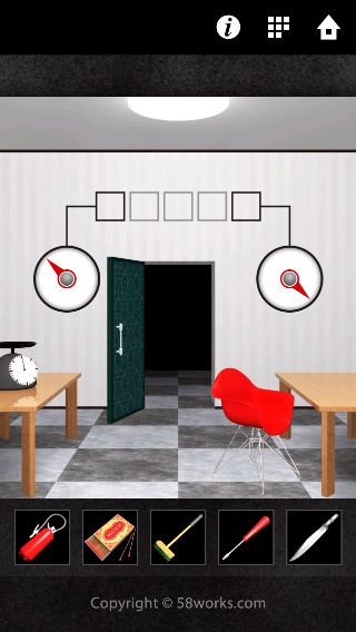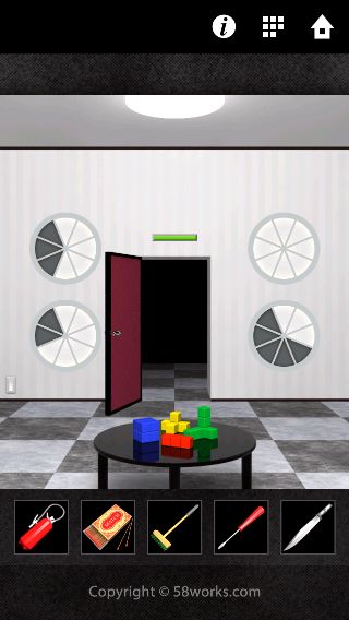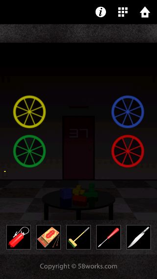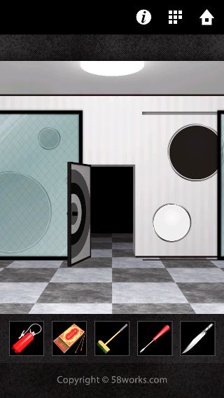 端末を左に傾けて、3つの円を扉の同じ大きさの円の色に合わせる。