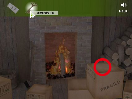暖炉の右上から「メモ」、右下の箱の上から「カギ」を入手。