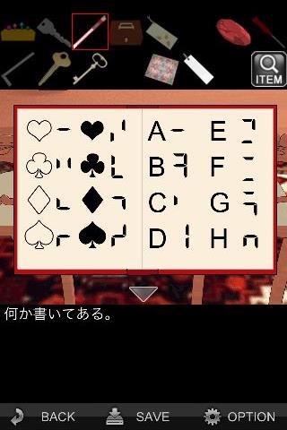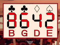 トランプ記号とアルファベットを、赤い本から抜き出して模様を重ねると数字になる。