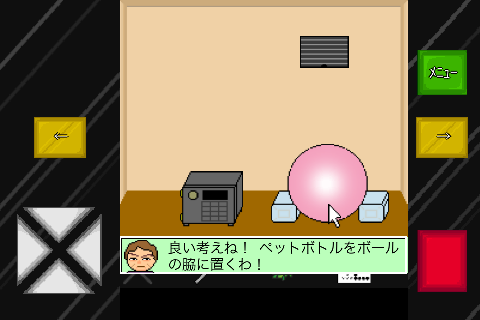 通気口の下に「ボール」を置いて、両脇に「ペットボトル」を置く。