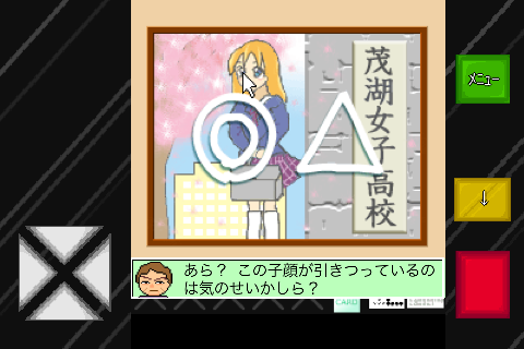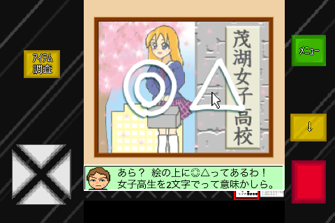 壁の絵の上に記号が浮かび上がっているのを確認。女子高生を2文字で表すと『JK』なので(一般的かは置いておいて…)、『◎=J』『△=K』となる。