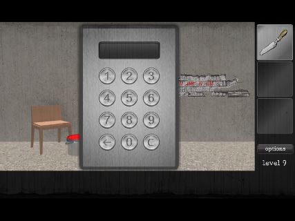 Digital Escape - Steel Doors(Metal Doors) 無料 0 評価する 送信する Level 9~12 Level 9 椅子の下から「パテ」を入手。 「パテ」で右の壁をこする。 赤い線の数を数える。 『3524』を入力する。 Level 10 端末を逆さにする。 『5590』を入力する。 Level 11 右の数字を、左の椅子の脚の色の順で並び替える。 『0592』を入力する。 Level 12 『ニンニク』、『十字架』、『棒』、『太陽』のパネルをタップする。 iPadでないと視認するのが難しいが、『2525』を入力する。 Level 1~4 Level 5~8 Level 9~12 Level 13~17 Level 18~22 Level 23~26 Level 27~30