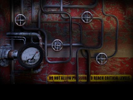 右のバルブを拡大して、蒸気が出ているパイプに繋がっているハンドルを回していく。
