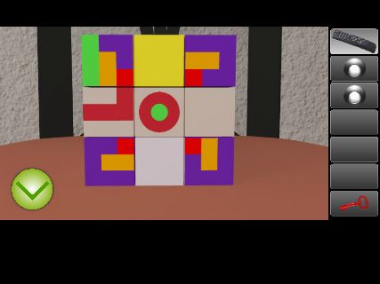 ここのヒントはスタート地点の椅子の上のキューブにある。