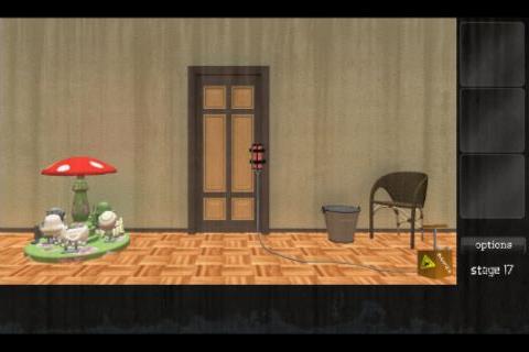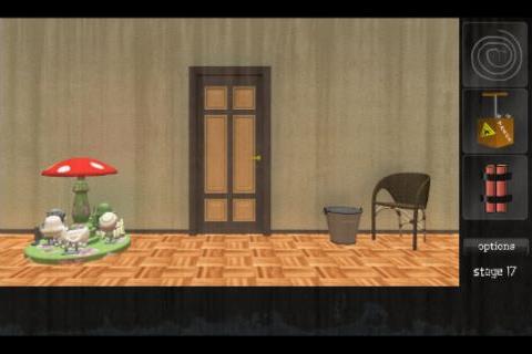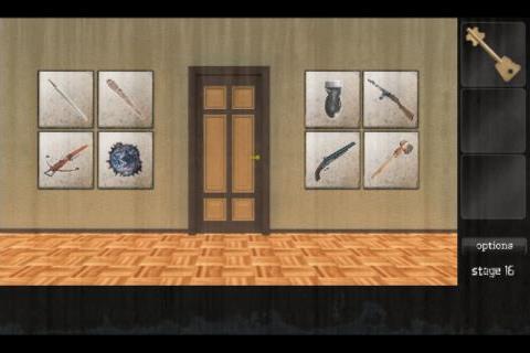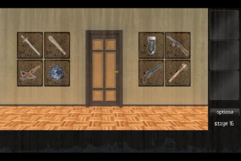 「斧」で左の棚を壊して、「銃」を入手して扉に使う。